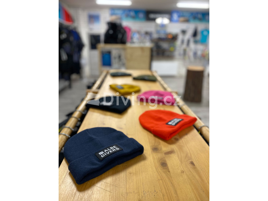 Kvalitní teplejší čepice v 7 barvách s našitým logem "ALBE DIVERS" ♥