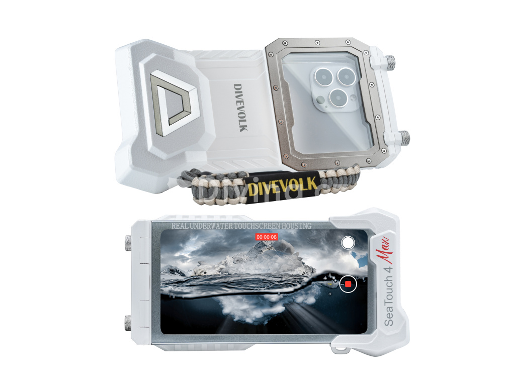 Podvodní dotykové pouzdro SeaTouch4 Max je díky revoluční konstrukci, která umožňuje plné ovládání vašeho mobilu až do hloubky 60 metrů, převratnou novinkou. Díky neomezenému ovládání dotykového displeje mobilu můžete jednoduše používat veškeré funkce a aplikace vašeho zařízení. Je to 1. podvodní plně dotykové potápěčské pouzdro pro smartphone na světě.